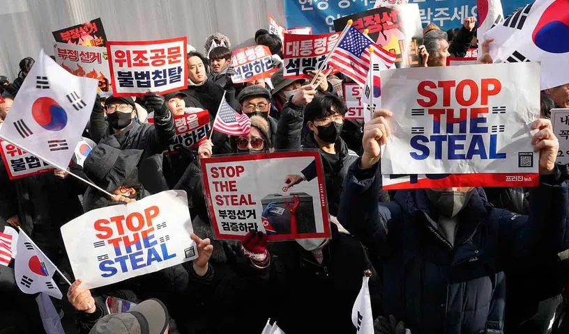 Yoon’s supporters forcefully entered the court by climbing over walls and breaking windows while hurling plastic chairs, trash and other objects, and spraying a fire extinguisher at police officers stationed around the building. They were part of an estimated crowd of 44,000 supporters of Yoon who had gathered outside the court Saturday as the impeached president attended a hearing regarding the extension of his detention.