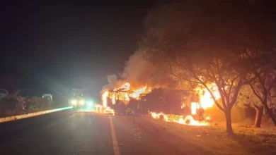 Traffic movement on National Highway 44 near Shamshabad was disrupted early Friday after a truck carrying plastic material caught fire. The driver and cleaner escaped unhurt, while fire officials suspect a short circuit triggered the blaze. Hyderabad: Traffic on the busy National Highway 44 at Shamshabad was affected after a truck laden with a load of plastic material caught fire on Friday early hours. No casualties were reported in the fire incident. According to reports, the truck was on its way from Hyderabad towards Bengaluru when a sudden fire started in the front portion of the truck. On noticing it, the driver and cleaner jumped out of the cabin. The truck was engulfed into flames within minutes. The local people who…