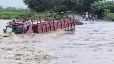 A goods truck was washed away along with its driver while attempting to cross the overflowing Nimmavagu stream at Jannaram…