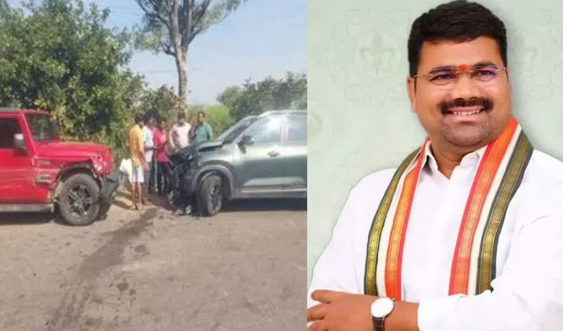 Choppadandi MLA Medipally Satyam’s convoy was involved in an accident near Puduru in Kodimial Mandal on Sunday. A collision with an oncoming vehicle triggered a chain reaction, damaging several cars in the convoy. Fortunately, no injuries were reported as airbags deployed.