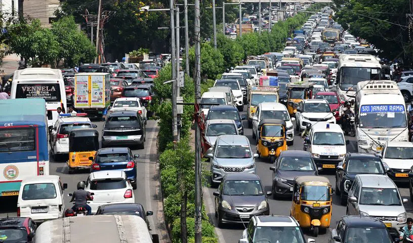 A major traffic jam gripped parts of Hyderabad on Friday following the nomination filing by Congress candidate V. Naveen Yadav for the Jubilee Hills bypoll. Key stretches from Yousufguda to Jubilee Hills were clogged for hours, severely affecting public transport and leaving commuters stranded.