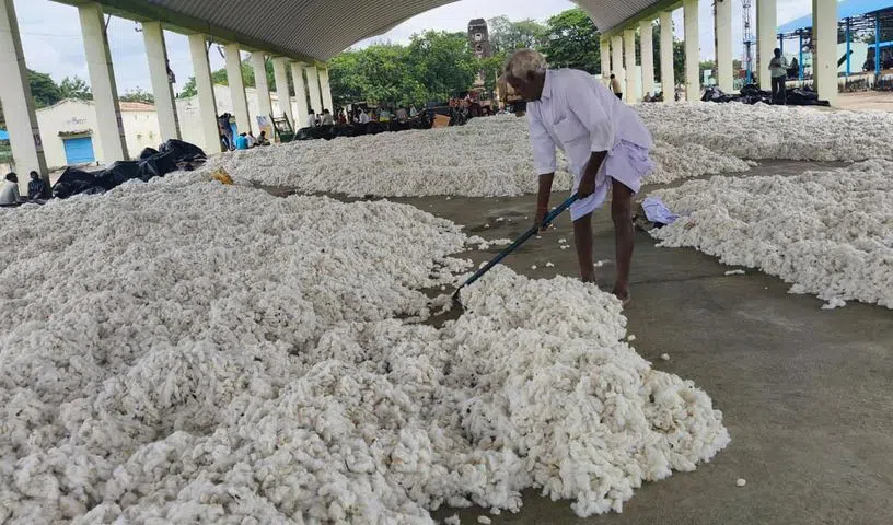 Growers said they were struggling to dry and safeguard their produce at the yard amid persistent cloudy conditions following the rains caused by Cyclone Montha. They said the cotton developed moisture after being shifted to the yard. Several farmers said they were spending sleepless nights guarding their produce.