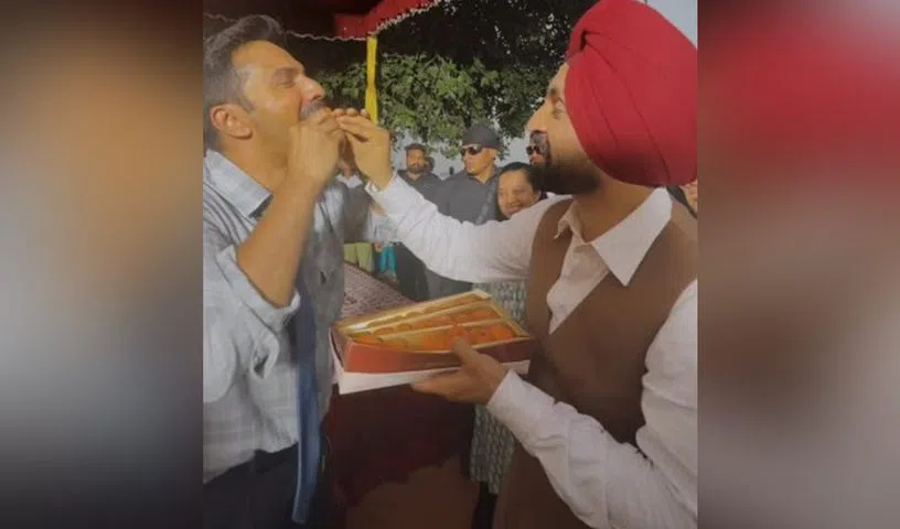 Diljit took to his Instagram, where he shared a video of him feeding ladoos to Varun and Ahan along with the director Anurag Singh, other crew members, and children in Punjab.