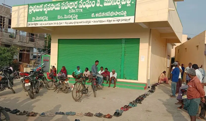 In Bhupalpally district, farmers were forced to wait for long hours for urea at PACS warehouse at Mogullapalli mandal headquarters. The farmers complained that they have to keep their footwear in the queue and wait since morning. They demanded that the government respond and provide enough urea.