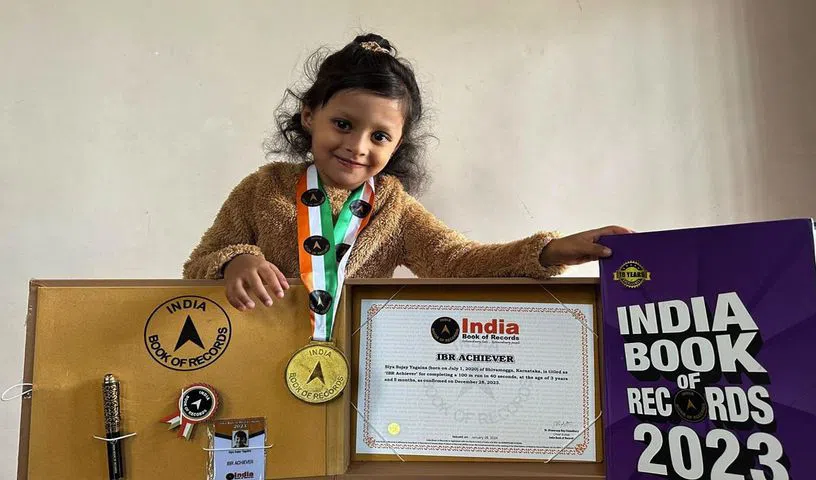 Five-year-old Siya from Davangere has entered the India and Asia Book of Records for identifying 74 medicines and cosmetics in just 3.5 minutes, showcasing exceptional memory and observational skills