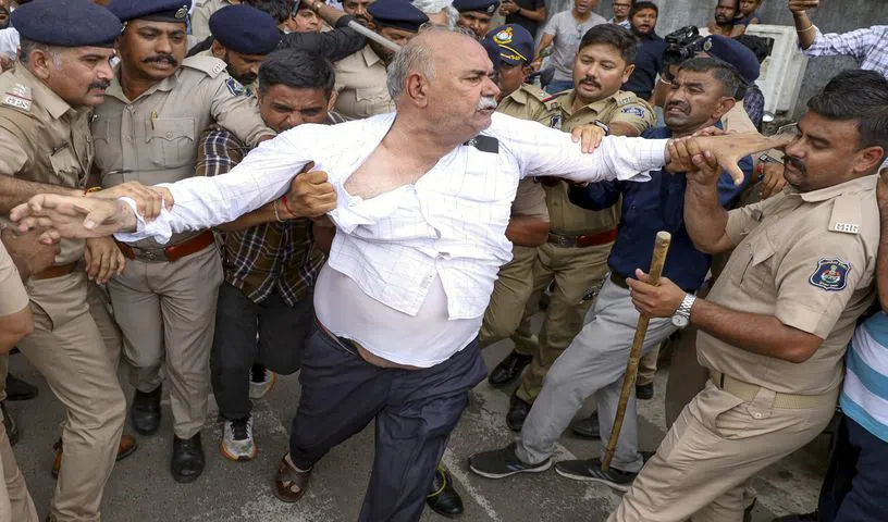 A large number of police personnel were already deployed outside the school situated in the Khokhra area of the city, anticipating protests.