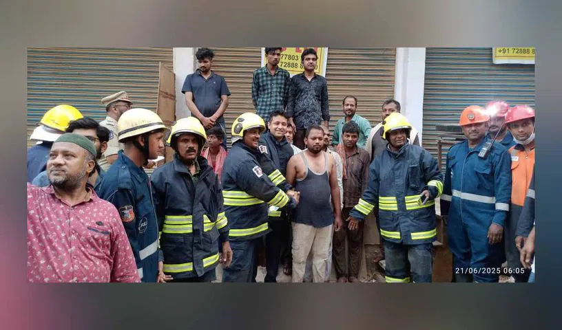 A fire broke out early Saturday in a furniture workshop at Asifnagar, Hyderabad. Twelve workers trapped on upper floors were safely rescued by fire officials. The blaze, caused by a short circuit, was controlled within an hour