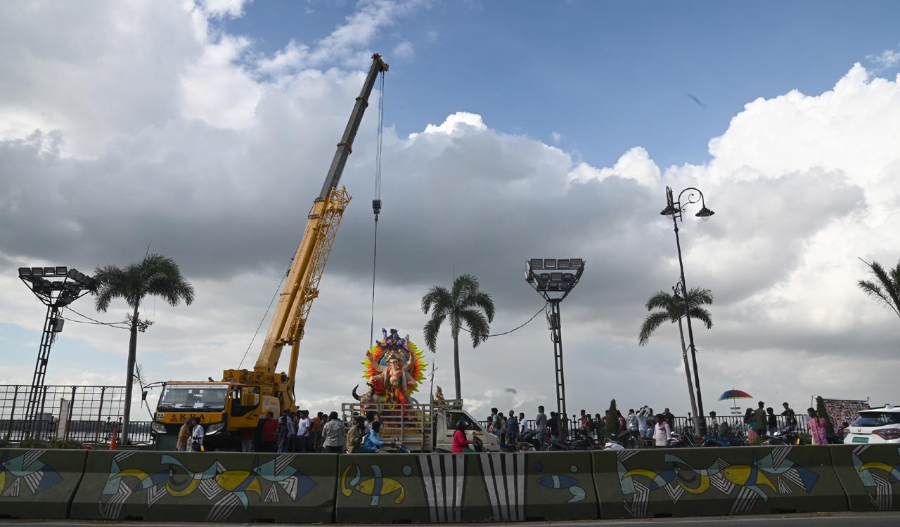 Immersion of Ganesh idols began in Hyderabad on Friday, marking the third day of festivities. The GHMC set up 74 artificial ponds and identified 20 major lakes, deploying staff, cranes and sanitation teams to manage the immersion smoothly