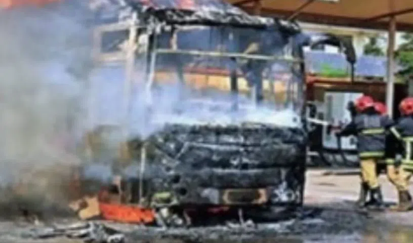 According to police, the bus driver noticed smoke coming out from the engine and immediately stopped the bus. He alerted the passengers, who all alighted.