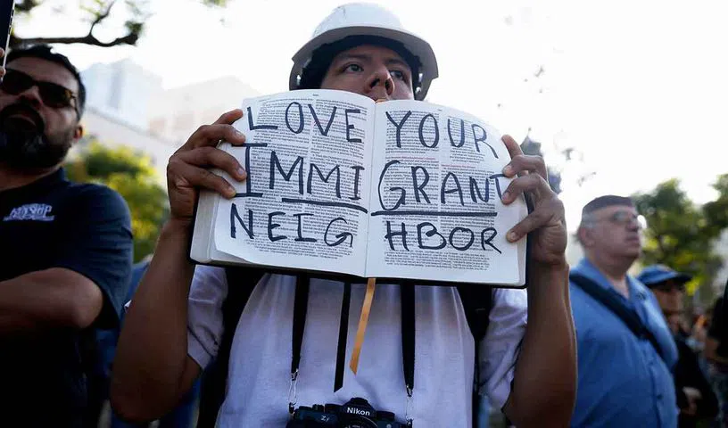 The protests began on Friday after federal immigration raids arrested dozens of workers in Los Angeles. Protesters blocked a major freeway and set cars on fire over the weekend, and police responded with tear gas, rubber bullets and flash-bang grenades. Thousands of people have peacefully rallied outside City Hall and hundreds more protested outside a federal complex that includes a detention center where some immigrants are being held following workplace raids.