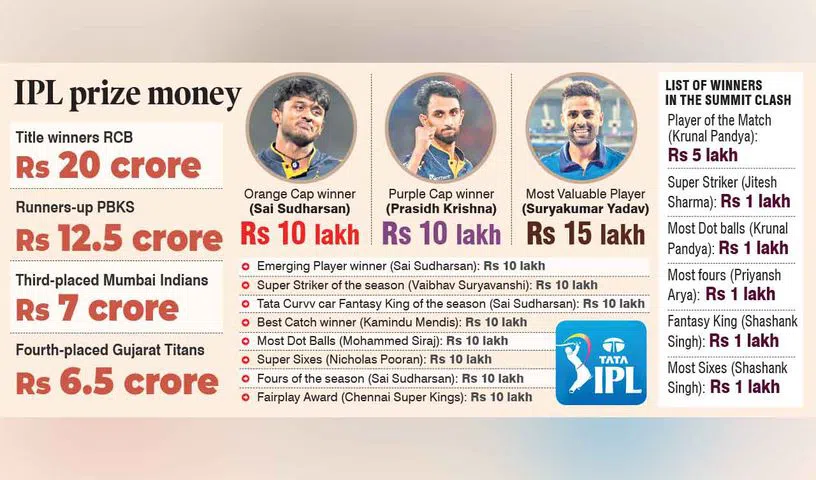 Ahmedabad: The newly-crowned IPL champions Royal Challengers Bengaluru (RCB) have received Rs 20 crore for winning the 18th edition of the league, while the runners-up Punjab Kings got richer by Rs 12.5 crore.