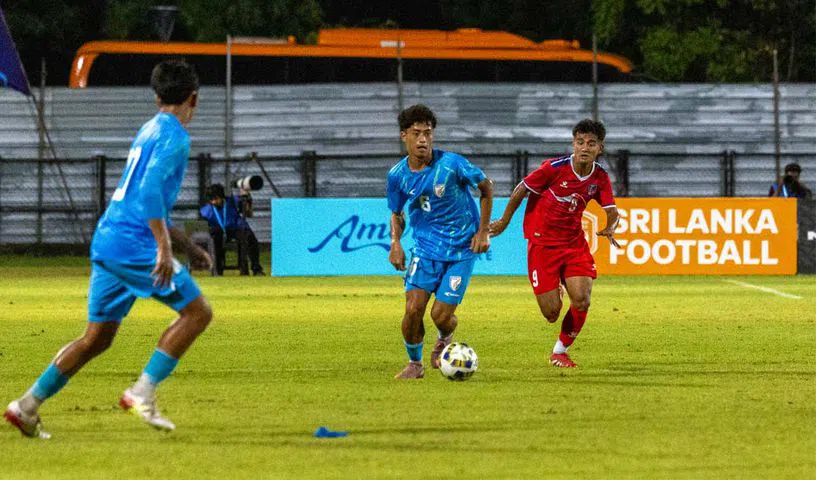 India reached the SAFF U-17 Championship 2025 final with a dominant 3-0 win over Nepal in Colombo. Goals from Wangkheirakpam Gunleiba, Azlaan Shah, and Diamond Singh sealed the win. India will face Bangladesh in the title clash.