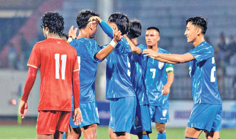 HYDERABAD: Defending champions India marched into the final of the SAFF (under-19) football championship with a clinical 3-0 win against Maldives in the semifinal in front of a passionate home crowd and under pouring rain at the Golden Jubilee Stadium in Yupia (Arunachal Pradesh) on Friday.