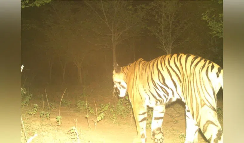 Officials confirmed that a male sub adult tiger, which came from Maharashtra forest areas was roaming on the borders of Tiryani of Kumram Bheem Asifabad district and Kasipet mandals. It might have drifted towards the forests of Mancherial and killed the calf on July 8, sparking panic among farmers and villagers. Pugmarks of the tiger were recorded at the spot of the cattle killing at Venkatapur.