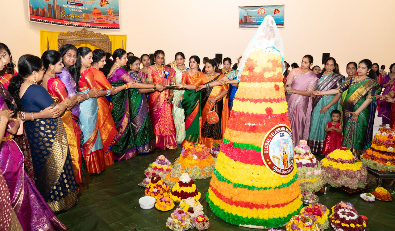 Bathukamma Detroit, Global Telangana Association, Telangana festival USA, Bathukamma Michigan, Dasara celebrations Detroit, Telugu diaspora Michigan, Bathukamma 2025 USA, Detroit Indian community events, Bathukamma flowers tradition, Telangana culture abroad