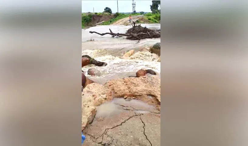 Incessant rains caused the Gangamma Vagu to overflow, cutting off Doop Singh Thanda in Medak district. With the stream flowing over a culvert, villagers remain stranded. Despite repeated pleas, no high-level bridge has been constructed by the authorities.