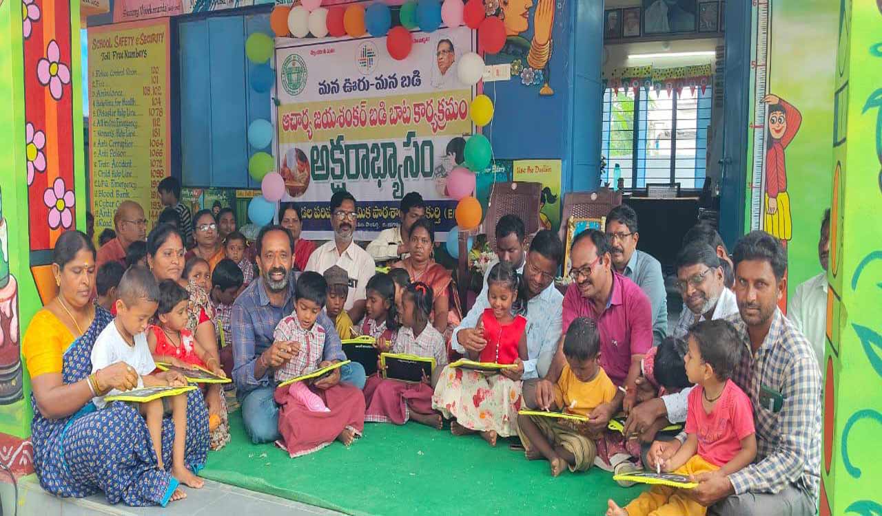 The initiative was born out of a simple observation by Vande Mataram Foundation’s founder, Takkelapalli Ravindar, who realised that government schools lacked a structured system for conducting Akshara Abhyasam. Determined to fill that gap, he launched the initiative as part of his ambition to strengthen public education in rural areas. The foundation itself was established in 2005 with that goal.